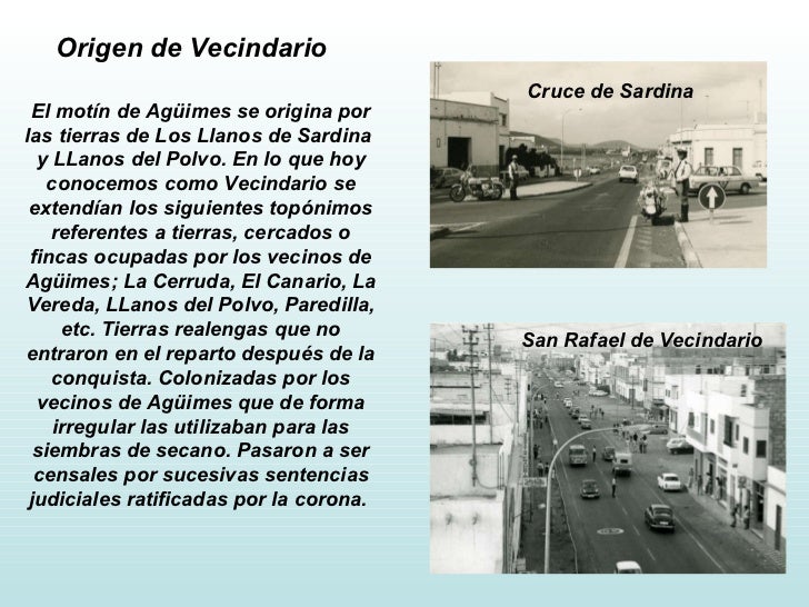 Se realizaron diferentes acciones, más simbólicas que efectivas, pero acciones sin las cuales no podría entenderse hoy el proceso de cohesión de la ciudadanía y el progreso o reconversión de los prácticamente inexistentes servicios. Débil estructura social, más visible en el pequeño comercio, pero que impedía el reconocimiento de derechos fundamentales a quienes cada año emigraban con su familia a Vecindario para trabajar como aparceros en la zafra del tomate. Se realizaron, en consecuencia, sobrepintadas con el nombre de “Vecindario” en las paradas de las Guaguas (Autobuses Urbanos) a lo largo de esos tres kilómetros lineales por los que discurre la Avenida de Canarias, antes Carretera General, así como tres grandes pintadas sobre el asfalto con el mismo nombre, respectivamente, al comienzo de la Avenida, en el Cruce de Sardina, hacia la mitad, en La Cerruda, y al final, en El Doctoral. En la memoria colectiva se conserva asimismo otro de los “operativos” del grupo: un pueblo sin plaza no es un pueblo. Con fondos de diversa procedencia y la complicidad el cura párroco encargaron dos placas de mármol con la inscripción “Plaza de San Rafael de Vecindario”. La primera se colocó un domingo a la salida de misa en un edificio a la entrada del descampado en que estaba la Iglesia, acto que recibió el aplauso de los feligreses y la mirada recelosa del Alguacil y de la pareja de la Guardia Civil. Años después la segunda placa sustituiría a la que fue retirada esa misma noche, como se esperaba, por orden del Alcalde y Jefe Local del Movimiento, José Caballero Monroy. El grupo siguió presionando hasta conseguir que un empresario exportador de tomates asfaltara la plaza. Había plantado antes doce Laureles de Indias que, clandestinamente, salieron de un vivero del barrio de Sardina. De esos doce emblemáticos árboles se conservan aún dos. Del grupo de la “Tuna de San Rafael” surge años después una iniciativa ciudadana que, agrupando diferentes fuerzas nacionalistas y de izquierda, se consolida como formación política de carácter asambleario: ICAN (Iniciativa Canaria Nacionalista). Carmelo Ramírez, uno de sus fundadores, se convertiría en el primer Alcalde del Ayuntamiento de referencia, consiguiendo la mayoría absoluta. La formación, ahora asociada a Nueva Canarias, sigue hoy en día al frente de la gestión municipal.
